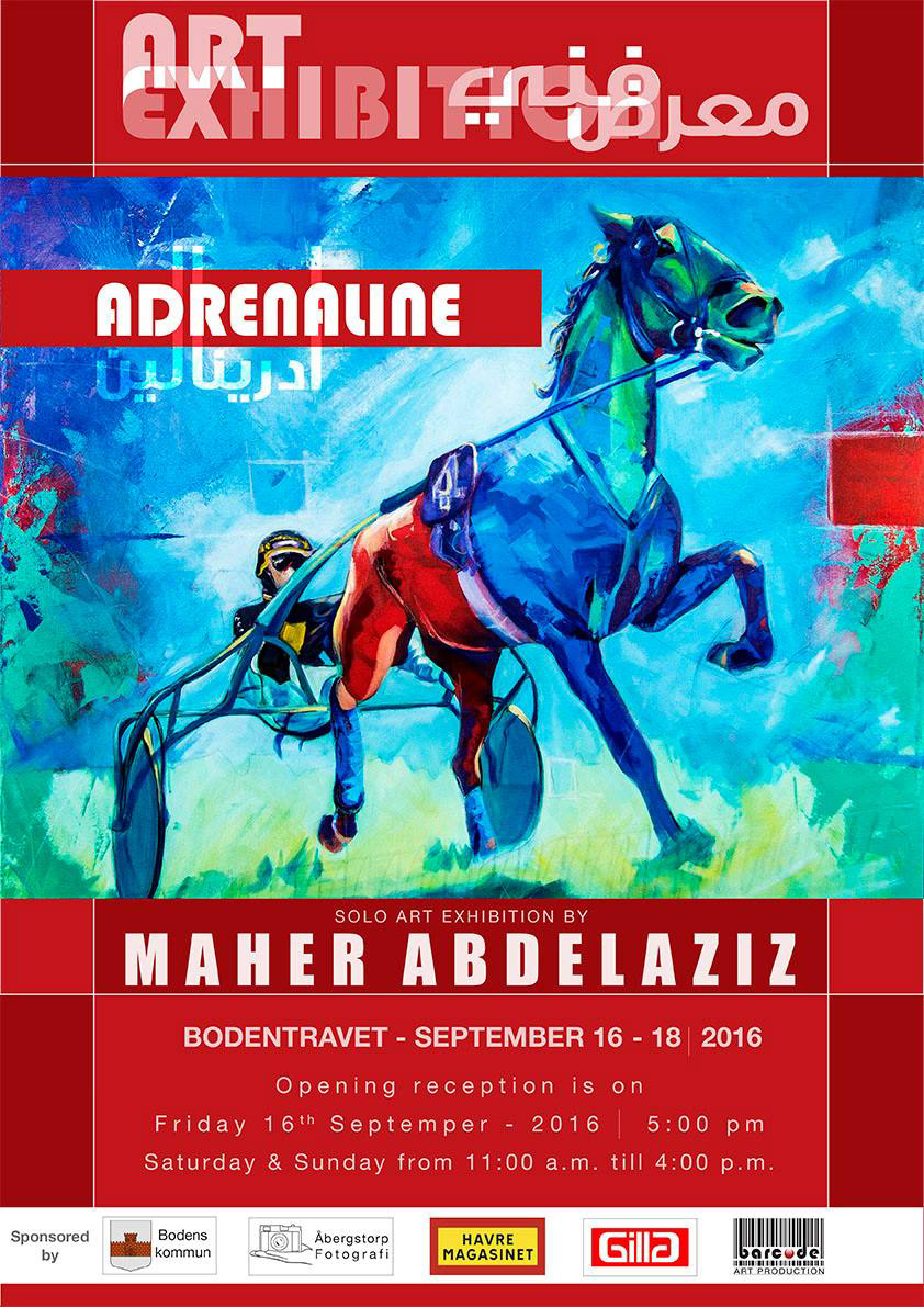 Enligt konstnären, Maher Abdul Aziz handlar det inte om hästarna själva utan snarare adrenalinet som flödar på travbanan och utställningen heter också just ”Adrenalin”